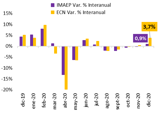 Evolución del IMAEP y ECN (Variación % Interanual)